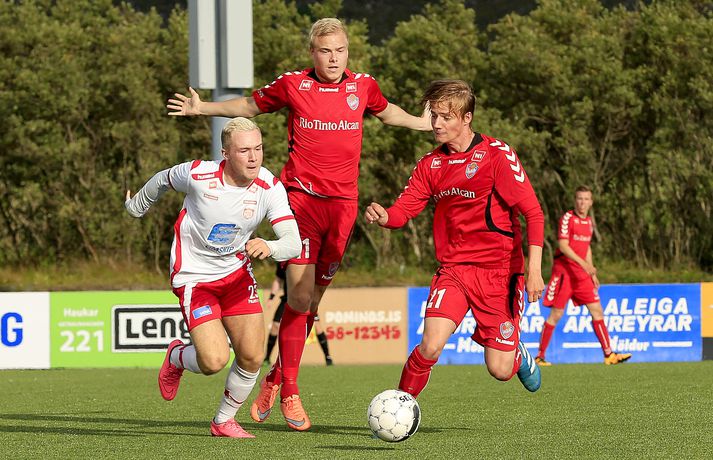 Haukar fjarlægjast fallbaráttuna eftir þriðja sigurinn í röð | Myndir Anton Ingi Leifsson skrifar 11. ágúst 2016 20:09 Haukarnir færast fjær og fjær falldraugnum. vísir/ernir Haukar unnu mikilvægan 3-2 sigur á Þór í Inkasso-deild karla í kvöld, en Haukarnir gerðu út um leikinn í fyrri hálfleik. Fjörið byrjaði strax á áttundu mínútu þegar Gunnar Gunnarsson kom Haukunum yfir og sex mínútum síðar tvöfaldaði Aron Jóhannsson forystuna af vítapunktinum. Veisla Hauka hélt áfram í fyrri hálfleik því á 22. mínútu skoraði Aron Jóhannsson annað mark sitt og þriðja mark Hauka. Gunnar Örvar Stefánsson, fyrrum Hauka-maður, minnkaði svo muninn á 26. mínútu og 3-1 fyrir Haukana í hálfleik. Jóhann Helgi Hannesson minnkaði svo muninn enn frekar á 77. mínútu, en nær komust Haukarnir ekki og mikilvægur 3-2 sigur þeirra staðreynd. Með sigrinum hoppa þeir upp í sjöunda sætið og eru þar með 20 stig, en Þór er í fimmta sætinu með 22 stig. Íslenski boltinn Mest lesið Bíll Shaquille O'Neal enn ófundinn Körfubolti Fluttu fréttir af snjónum í Reykjavík Fótbolti Formaðurinn hjálpaði til við að moka völlinn Fótbolti Búið að finna leiðina til að pirra og vinna Liverpool Enski boltinn Snjóbræðslukerfi Þróttar kom KSÍ til bjargar Fótbolti Epicbet sýni handboltann í leyfisleysi: „Enda ólöglegar síður“ Handbolti Tölur úr Bestu 2025: Klúðraði langflestum dauðafærum í sumar Íslenski boltinn Segja spurningar vakna um stöðu Elísabetar Fótbolti Ísland - Norður-Írland | Snjórinn farinn og slegist um sæti í A-deild Íslenski boltinn Skiptiborð hjá stelpunum í kvöld Körfubolti Fleiri fréttir Ísland - Norður-Írland | Snjórinn farinn og slegist um sæti í A-deild Tölur úr Bestu 2025: Klúðraði langflestum dauðafærum í sumar FH bíður með að tilkynna nýjan þjálfara Óskar Hrafn fer ekki fet Birnir frá Akureyri í Garðabæ Hættir með Fram Heimir kynntur til leiks í Árbænum Túfa rekinn frá Val Leyndarmáli ljóstrað upp þegar Heimir og Björn kvöddu Leikmenn kusu Patrick og Guðmund Sjáðu bananabombu Antons Loga og önnur síðustu mörk tímabilsins Uppgjörið: Stjarnan - Breiðablik 2-3 | Stjarnan í Evrópu þrátt fyrir tap „Held að ég geti ekki gert mikið meira“ Uppgjörið: Vestri - KR 1-5 | KR bjargaði sér og sendi Vestra í Lengjudeildina Uppgjörið: ÍA - Afturelding 1-0 | Afturelding staldraði stutt við í efstu deild Uppgjörið: Víkingur - Valur 2-0 | Meistararnir klára tímabilið með stæl Uppgjörið: ÍBV - KA 3-4 | KA tryggði sér Forsetabikarinn þriðja árið í röð Ráðast örlög Aftureldingar inni í höll? „Þetta verður bara veisla fyrir vestan“ Vestri og KR mætast á fyrsta degi vetrar: „Vona að það snjói ekki í nótt“ Lárus Orri framlengir á Skaganum „Kominn tími á sigur í Sambandsdeildinni“ Tekur við af læriföður sínum Snjó kyngir niður á Akureyri og Evrópuleikur færður inn „Veistu hvað leikmaðurinn sagði við mig?“ „Ég þarf bara að láta verkin tala“ Valur og Sigurður Egill senda frá sér sameiginlega yfirlýsingu Hemmi Hreiðars orðaður við Val Katrín kvödd með fallegum hætti: „Ég hef aldrei séð þetta áður“ Sjáðu þrumufleyg Fred og snöggt svar Stjörnunnar Sjá meira