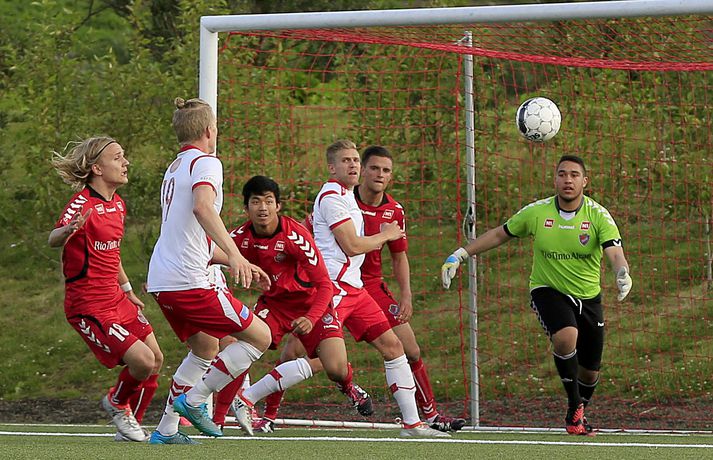 Haukar unnu mikilvægan 3-2 sigur á Þór í Inkasso-deild karla í kvöld, en Haukarnir gerðu út um leikinn í fyrri hálfleik. Fjörið byrjaði strax á áttundu mínútu þegar Gunnar Gunnarsson kom Haukunum yfir og sex mínútum síðar tvöfaldaði Aron Jóhannsson forystuna af vítapunktinum. Veisla Hauka hélt áfram í fyrri hálfleik því á 22. mínútu skoraði Aron Jóhannsson annað mark sitt og þriðja mark Hauka. Gunnar Örvar Stefánsson, fyrrum Hauka-maður, minnkaði svo muninn á 26. mínútu og 3-1 fyrir Haukana í hálfleik. Jóhann Helgi Hannesson minnkaði svo muninn enn frekar á 77. mínútu, en nær komust Haukarnir ekki og mikilvægur 3-2 sigur þeirra staðreynd. Með sigrinum hoppa þeir upp í sjöunda sætið og eru þar með 20 stig, en Þór er í fimmta sætinu með 22 stig.