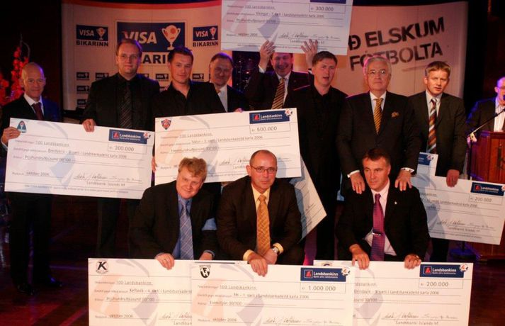 Formaður ÍTF segir Leikmannasamtök Íslands fara fram með blekkingum og græðgi Kolbeinn Tumi Daðason skrifar 5. október 2017 09:00 95% leikmanna í efstu deildum vilja endurvekja lokahóf KSÍ. Á myndinni má sjá bestu og efnilegustu leikmenn Landsbankadeildarinnar með verðlaun sín á lokahófi KSÍ á Broadway árið 2006. Vísir/Daníel Formaður Íslensks Toppfótbolta, hagsmunasamtaka félaganna í Pepsi-deild karla, segir Leikmannasamtök Íslands fara fram með blekkingum. Eins og fjallað var um á Vísi í gær gerðu leikmannasamtökin tilraun til að halda lokahóf á pari við þau sem gengið var að sem árvissum hlut þangað til fyrir tíu árum.Formaður leikmannasamtakanna segir félögin ekki hafa lagt í kostnaðinn sem fylgi slíku hófi. Formaður ÍTF spyr hvaða leikmenn séu eiginlega í leikmannasamtökunum og telur að leikmannasamtökin hafi ætlað að græða á hófinu.Kristinn Björgúlfsson í háloftunum í bláum og hvítum búningi ÍR.Vísir/StefánLokahóf ofan í lokahóf Upphaf málsins má rekja til þess að leikmannasamtökin, undir forystu Kristins Björgúlfssonar, leituðu til ÍTF um miðjan maí. Samtökin höfðu gert könnun meðal leikmanna í Pepsi-deild karla og kvenna þar sem fram kom að um 95% höfðu áhuga á að endurvekja lokahófið. „Þeir kynntu þetta fyrir okkur,“ segir Haraldur Haraldsson, formaður ÍTF og knattspyrnudeildar Víkings, í samtali við Vísi. Haraldur og kollegar hans hafi kannað stöðuna hjá félögunum og niðurstaðan vissulega verið sú að dæmið gengi ekki upp. „Meðal annars af því að félögin væru hvert fyrir sig með stór lokahóf, leikmenn, þjálfarar og margir útlendingar fara strax eftir síðustu helgina og svo eru margir í verkefnum þessa helgi, enda landsleikjahelgi,“ segir Haraldur. Samtökin hafi lagt upp með komandi helgi, föstudagskvöldið 6. október, en A-landslið karla mætir Tyrkjum ytra á föstudaginn.Haraldur Haraldsson er formaður ÍTF og knattspyrnudeildar Víkings.ÍTFUngar stelpur í Pepsi-deildinni „Svo má ekki gleyma að í kvennaliðunum er stór hluti stelpur sem mega ekki vera á svona kvöldi. Það er eitt vandamál,“ segir Haraldur og vísar til þess hve meðalaldurinn er lágur í liðum í kvennaboltanum. Hans stelpur, HK/Víkingur, hafi farið upp í sumar en þar sé tveir þriðju leikmanna liðsins undir aldri. Aðspurður hvernig Víkingur hafi tæklað það vandamál á eigin lokahófi, segir Haraldur að yngri stelpurnar hafi farið heim að lokinni verðlaunaafhendingu. „Svo voru mörg önnur mál sem stoppuðu þetta strax,“ segir Haraldur. Nefnir hann ferða- og gistikostnað liða utan af landi, óljós aðkoma KSÍ að hófinu og svo væru lokahóf einstakra félaga orðin að föstum lið og fjárölfun sem færu fram engu að síður, að kvöldi síðasta leikdag í karlaboltanum. Svör hafi borist um hæl frá Kristni þess efnis að átján ára aldurstakmark yrði á hófið og tuttugu ára aldurstakmark á barinn. Kostnaður félaganna væri metinn 5000 krónur per leikmann og unnið yrði að því að aðstoða félögin utan af landi við að fá afslátt hvað varðaði gistingu. Haraldur bendir á að 5000 krónur per leikmann eða gest þýði nokkur hundruð þúsund krónur í kostnað fyrir félög með kvennalið og karlalið í Pepsi-deildinni. Enn var þó óljóst hvernig aðkoma KSÍ yrði að hófinu, að sögn Haraldar. Skipulagið og miðasala yrði í umsjá leikmannasamtakanna. Drög að hófinu voru þau að það færi fram í Kaplakrika, Auddi og Sveppi sæju um veislustjórn, þriggja rétta máltíð og Stuðmenn spiluðu fyrir dansi.Guðni Bergsson, formaður KSÍ.Vísir/VilhelmNáið samstarf með Guðna Þannig skildu leiðir að mati formanna félaganna að sögn Haraldar. Ekkert heyrðist frá leikmannasamtökunum í tæpa þrjá mánuði eða þar til í lok ágúst. Þá hafði Kristinn formaður samband og tilkynnti að lokahófið, sem Haraldur segir langt í frá að hafi fengið grænt ljós frá félögunum, yrði í Gamla Bíó föstudagskvöldið 6. október. Nú væri lagt upp með að ÍTF greiddi fyrir fordrykkinn sem væri í kringum milljón krónur í kostnað, skipt á félögin. Formenn ÍTF komu af fjöllum, töldu að hófið hefið verið slegið útaf borðinu enda ekkert heyrt í tæpa þrjá mánuði, og veltu enn fyrir sér hver aðkoma KSÍ að málinu yrði. Kristinn hafi svarað því til að samtökin hefðu óskað eftir því að KSÍ sæi um að greiða fyrir matinn, sem væri stærsti kostnaðarliðurinn. Þeir Guðni Bergsson hefðu verið í nánu samstarfi með hófið yfir sumarið og það styttist í þeirra ákvörðun í málinu. Ekki liggur fyrir hver kostnaður KSÍ af hófinu hefði átt að vera. En miðað við að matarkostnaðurinn var áætlaður sá dýrasti, og lagt upp með að ÍTF greiddi milljón krónur í fordrykkinn, er ljóst að kostnaður KSÍ hefði hlaupið á milljónum króna.Valsmenn eru Íslandsmeistarar í efstu deild karla, í 21. skiptivísir/anton brinkKomu af fjöllum ÍTF svaraði Kristni og leikmannasamtökunum í framhaldinu. Afstaða félaganna væri sú að nánast öll félögin í efstu deild hefðu þegar skipulagt lokahóf sem færu fram 30. september. Kostnaður við þau væri mikill og ekki forsenda fyrir því að taka þátt í kostnaði við annað lokahóf helgina á eftir. Þá væri fjöldi leikmanna farinn af landi brott, ýmist í frí eða erlendir leikmenn á leiðinni heim. Þá sögðust félögin hafa áhyggjur af því að tilkynnt væri um lokahóf á vegum samtakanna og KSÍ án þess að félögin væru upplýst um stöðu mála eða höfð með í ráðum. Lokahóf sem þetta þyrfti að liggja fyrir áður en tímabil hæfist svo félögin gætu ráðfært sig. „Við komum gjörsamlega af fjöllum. Enda heldur enginn lokahóf án aðkomu félaganna. Einhver leikmannas