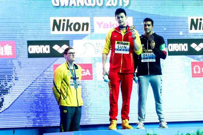Óvinsæli kínverski Ólympíumeistarinn dæmdur í átta ára bann Óskar Ófeigur Jónsson skrifar 28. febrúar 2020 11:00 Ástralinn Mack Horton neitaði að stíga upp á verðlaunapallinn með Sun Yang á síðasta heimsmeistaramóti. Getty/Visual China Group Kínverski heims- og Ólympíumeistarinn Sun Yang hefur verið dæmdur í átta ára keppnisbann eftir að Alþjóðaíþróttadómstóllinn staðfesti að áfrýjun Alþjóðalyfjaeftirlitsins hafi átt rétt á sér. Alþjóðasundsambandið hafði nefnilega hreinsað kínverska sundmanninn af ásökunum um ólöglega lyfjanotkun en Wada áfrýjaði þeirri ákvörðun til CAS, Alþjóðaíþróttadómstólsins. Hinn 28 ára gamli Sun Yang fær því ekki tækifæri til að verja Ólympíumeistaratitilinn sinn á ÓL í Tókýó í sumar. Olympic swimming champion Sun Yang banned for eight years after Cas ruling https://t.co/kVc6gvkPxy— Guardian sport (@guardian_sport) February 28, 2020 Sun Yang var sakaður um að mölva lyfjaflösku með blóðsýni sínu eftir rifrildi við menn sem lyfjaprófuðu hann í september 2018. Sun Yang, móðir hans og fylgdarlið áttu einnig að hafa reynt að koma í veg fyrir lyfjaprófið og ástæðan var að þau töldu að þeir sem voru mættir til að framkvæma lyfjaprófið hafi ekki haft tilskilin réttindi. Sun hafði áður fengið þriggja mánaða dóm fyrir annað brot. Alþjóðasundsambandið taldi hans vegar saklausan af öllu saman og hreinsaði hann af þessum ásökunum við litlar vinsældir í hreyfingunni. Sun Yang mætti síðan á HM í sundi í Suður-Kóreu í júlí í fyrra og vann þá tíunda og ellefta heimsmeistaratitil sinn á ferlinum. Three-time Olympic champion Sun Yang has been banned for eight years for missing a doping test in September 2018 https://t.co/omYeXZOB9G The Chinese swimmer has never been far from controversy… pic.twitter.com/t6iPgE4WjT— BBC Sport (@BBCSport) February 28, 2020 Sun Yang var án efa óvinsælasti sundmaður mótsins þrátt fyrir gullverðlaunin. Ástralinn Mack Horton og Bretinn Duncan Scott neituðu meðal annars að deila með honum verðlaunapallinum. Nú er ferill Sun Yang hins vegar svo gott sem á enda eftir þennan harða dóm. Hann verður orðinn 36 ára gamall þegar hann má keppa á nýjan leik. Kína Ólympíuleikar 2020 í Tókýó Sund Mest lesið Sjáðu geggjaðan snúning Alberts áður en hann skoraði frábært mark Fótbolti Bunting dró orð sín til baka með tárin í augunum: „Ég er ekki meistari fólksins“ Sport Sakaður um svindl á HM í pílukasti Sport Táningur fær mikið hrós fyrir viðbrögð sín þegar mótherji missti meðvitund Fótbolti Áhorfendur ærðust eftir mögulega mark mótsins í fyrsta leik Fótbolti Hættur aðeins þrítugur Golf Klappstýrur Björgvins Karls slógu í gegn Sport Óskar Hrafn um komu Arnórs Ingva: „Gífurlega dýrmætt fyrir KR“ Íslenski boltinn Stórstjarna úr WNBA-deildinni í heimsókn á Íslandi Körfubolti „Ef þið væruð Antoine Semenyo, hvert mynduð þið fara?“ Enski boltinn Fleiri fréttir Afkáralegt fagn hjá hetju Sambíu Glódís Perla veik í jólafríið en enn taplaus Hættur aðeins þrítugur Glódís og Hákon best í fótboltanum á árinu Frelsaði fjárfestirinn Dani Alves gefur sjálfum sér samning Fagnaði titli Liverpool sem óður maður um alla borg Mbappé breytti um fagn af góðu tilefni „Allir virðast elska hann“ Stjörnuútherji Steelers sló til áhorfenda í miðjum leik Haukur getur náð hundrað plús hundrað fyrir EM-fríið Meira en 37 stöðugildi hjá Knattspyrnusambandi Íslands Táningur fær mikið hrós fyrir viðbrögð sín þegar mótherji missti meðvitund „Þetta mun ekki buga okkur“ Guardiola mun vigta leikmenn Man City eftir jólin Stórstjarna úr WNBA-deildinni í heimsókn á Íslandi Mætir öldungnum sem breytti lífi hans Missti af tveimur mánuðum eftir að hafa slasast við að tengja sjónvarpið „Ef þið væruð Antoine Semenyo, hvert mynduð þið fara?“ Freyr himinlifandi með íslensku strákana Sjáðu geggjaðan snúning Alberts áður en hann skoraði frábært mark Klappstýrur Björgvins Karls slógu í gegn Óskar Hrafn um komu Arnórs Ingva: „Gífurlega dýrmætt fyrir KR“ ÍR-ingar bæta við sig reyndum og hittnum Króata Bunting dró orð sín til baka með tárin í augunum: „Ég er ekki meistari fólksins“ Áhorfendur ærðust eftir mögulega mark mótsins í fyrsta leik Sjáðu mörkin: Rogers sá um Manchester United Í bann fyrir að kasta flösku í barn Dagskráin í dag: Sá elsti á HM í pílu og enski boltinn Hjalti Þór ráðinn aðalþjálfari Álftaness HM í pílu: Littler flaug áfram og kvöldinu lauk með spennutrylli Sjá meira