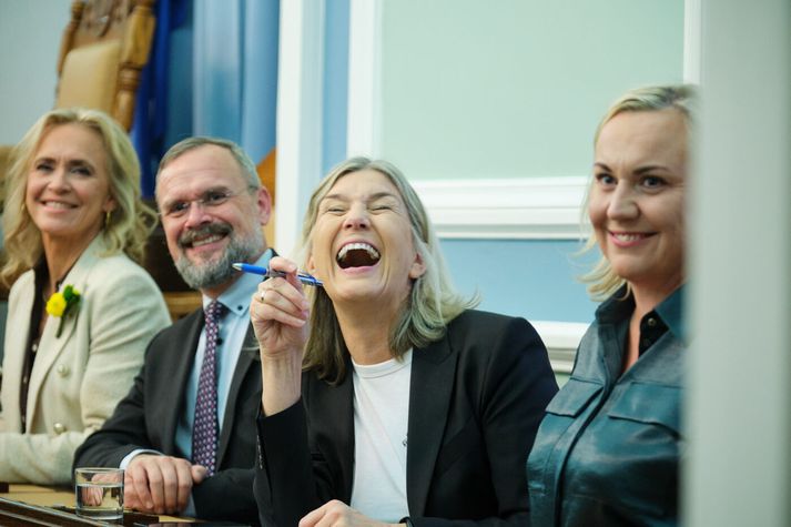 Fréttastofa spurðist fyrir um hvernig kvenleiðtogar í ríkisstjórn Íslands ætli að verja deginum á morgun og hvort þær hyggist leggja niður störf í tilefni af fimmtíu ára afmæli kvennaverkfalls. Þorgerður í fríi en ekki Kristrún og Inga Samkvæmt svari um fyrirætlanir forsætisráðherra á morgun ætlar Kristrún Frostadóttir að verja deginum með fjölskyldunni vegna vetrarfrís í skólum en hún verði þó ekki í fríi. Fyrir liggur að leiðtogar í hinu svokallaða Bandalagi hinna viljugu (e. Coelition of the Willing) munu funda í Lundúnum á morgun ásamt Selenskí Úkraínuforseta, og stefnt að því að Kristrún taki þátt á fjarfundi samkvæmt svari ráðuneytisins. Þá verði starfsfólki ráðuneyta veitt svigrúm til að taka þátt í viðburðum tengdum kvennafrídeginum á morgun. Leiðtogar ríkisstjórnar Íslands hafa ólík plön á morgun.Vísir/Vilhelm Samkvæmt svari frá aðstoðarmanni Ingu Sæland, félags- og húsnæðismálaráðherra, mun hún halda áfram að sinna sínum skyldustörfum á morgun en mun reyna að haga dagskrá sinni þannig að hún muni geta litið við á Arnarhóli þar sem fram fer dagskrá í tilefni dagsins. Þá er Þorgerður Katrín Gunnarsdóttir utanríkisráðherra í fríi „en á því miður ekki heimangengt“ til að taka þátt í samstöðufundi. „Hún verður þó með í baráttuanda og hugsar hlýlega til allra þeirra kvenna sem hafa rutt brautina,“ að því er segir í svari um fyrirætlanir utanríkisráðherra á morgun. Viðreisnarkonur halda boð í bænum Þorbjörg Sigríður Gunnlaugsdóttir, dómsmálaráðherra og ráðherra jafnréttismála, mun taka þátt í skipulagðri dagskrá á morgun í tilefni dagsins. Þar á meðal tekur hún þátt í pallborði á vegum ASÍ í Hörpu um erlendar konur á vinnumarkaði og virðismat starfa. Þá hyggst hún taka þátt í útifundi á Arnarhóli og að honum loknum verður hún með viðburð ásamt Hönnu Katrínu Friðrikssen atvinnuvegaráðherra í Gamla bíó frá klukkan fjögur til sex. Hressir ráðherrar Viðreisnar. Helmingur þeirra, Hanna Katrín og Þorbjörg Sigríður, verða með boð í Gamla bíói síðdegis á morgun í tilefni dagsins.Vísir/Anton Brink Vísir hefur ekki upplýsingar um hvernig Alma Möller heilbrigðisráðherra hyggst verja deginum. Loks má geta þess að Halla Tómasdóttir, forseti Íslands, greindi frá því í dag að sjálf ætli hún að leggja niður störf. Engir fundir eru á dagskrá Alþingis á morgun, hvorki þingfundur né nefndafundir, sem er í samræmi við fyrirliggjandi starfsáætlun Alþingis. Hins vegar verður opið hús í Alþingishúsinu þar sem boðið verður upp á leiðsögn fyrir gesti og gangandi.