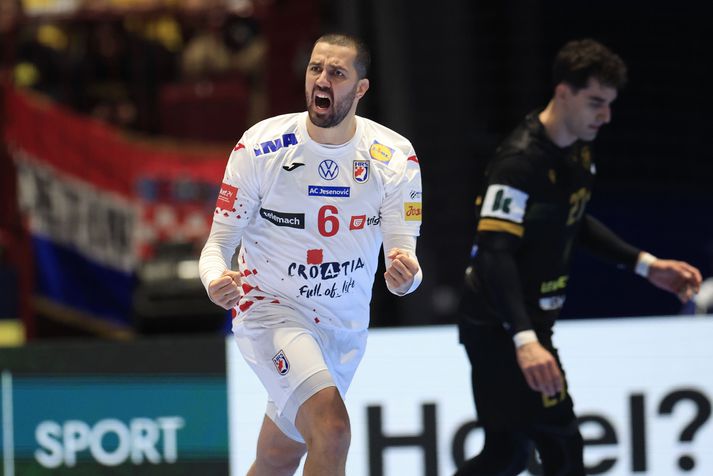 Rétt eins og Íslendingar þá eru Slóvenar með örlög sín í eigin höndum. Vinni þeir Króatíu þá geta þeir tryggt sig áfram í undanúrslit með sigri gegn Íslandi á morgun. Lærisveinar Dags Sigurðssonar þurfa hins vegar að vinna sína leiki og treysta á að Ísland eða Svíþjóð tapi leik. Slóvenar urðu fyrir miklum skakkaföllum í aðdraganda EM en slóvenski miðillinn Ekipa segir þjálfarann Uros Zorman ekki lengur hafa afsakanir til að stefna ekki á verðlaun á mótinu. Liðið hafi sýnt hvað það geti með því að vinna Sviss, Færeyjar og Svartfjallaland, sem og svo Ungverja 35-32 á sunnudaginn. Eina tapið til þessa er 35-31 gegn heimamönnum, Svíum, í hörkuleik. Skipti um landslið eftir EM 2020 Einn þeirra sem Slóvenar þurfa að glíma við í dag er hægri hornamaðurinn Mario Sostaric sem var slóvenskur landsliðsmaður en gafst upp vegna skorts á tækifærum, eftir leikinn um bronsverðlaunin á EM 2020. Hann var orðinn þreyttur á að vera í skugganum á Blaz Janc og fleirum, og fór svo yfir landamærin í króatíska landsliðið. Mario Sostaric og félagar í króatíska landsliðinu eru ekki með örlögin í eigin höndum.EPA/Andreas Hillergren Sostaric mætti einmitt Slóvenum og vann þá á HM fyrir ári síðan, í leik sem skipti Íslendinga gríðarlegu máli. Króatar unnu þann leik 29-26, við gríðarlegan fögnuð á heimavelli sínum í Zagreb, en jafntefli eða sigur Slóvena hefði skilað Íslandi áfram í 8-liða úrslit á kostnað Króata. Grínast fyrst en svo tekur alvaran við „Við erum tilbúnir og búumst við afar tilfinningaríkum leik,“ sagði Sostaric við króatíska miðilinn RTL. „Þetta verður alvöru fullorðins slagur. Það er undir okkur komið að halda tilfinningunum í skefjum þar til leikurinn hefst. Við viljum færa þjóðinni sigur,“ sagði Sostaric og átti þá við króatísku þjóðina. Hann er orðinn vanur að mæta Slóvenum. „Ég hef mætt þeim oft og veit hvernig það er. Við grínumst aðeins og heilsumst en því er svo öllu ýtt til hliðar þegar leikurinn hefst og ég get ekki beðið eftir því,“ sagði Sostaric og kvaðst vongóður um að tveir sigrar myndu á endanum skila Króötum í undanúrslit mótsins.