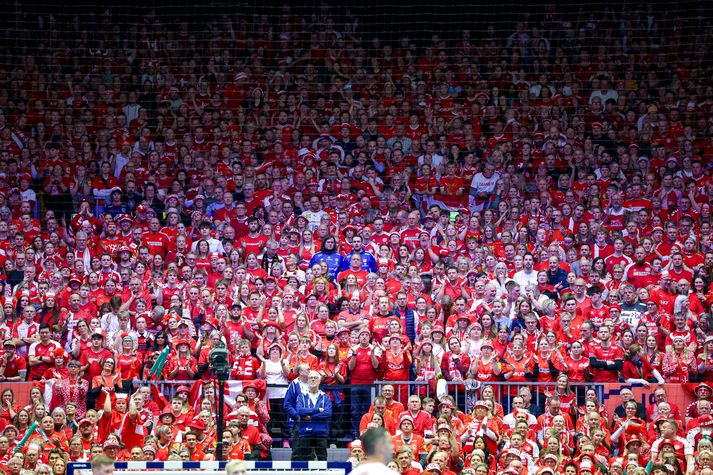 Enn situr í fersku minni þegar þúsundir Íslendinga sátu svekktir eftir hér á landi með engan miða á úrslitahelgi EM í janúar. Einhverjir eru kannski farnir að hugsa um að skella sér á næsta stórmót, HM í janúar, en þar eru allir miðar í almennri sölu orðnir uppseldir. „Það eru ekki nema nokkrir dagar síðan við fengum að vita hvar við myndum spila. Við komum til með að spila riðilinn í Magdeburg, förum svo yfir til Hannover í milliriðla og þaðan til Köln, ef allt gengur vel. Miðasala hófst fyrir mörgum mánuðum, og eins ótrúlegt og það er þá er búið að selja þúsundir af miðum. Þýska þjóðin virðist hafa keypt ótrúlega mikið magn af miðum án þess að vita hvaða lið eru að fara að spila í höllinni,“ sagði Jón Halldórsson, formaður HSÍ. Aðeins tvö lítil bláber sáust í eldrauðum dönskum berjamó á EM í janúar. vísir / vilhelm HSÍ náði hins vegar að redda nokkur hundruð miðum og verður með hópferðir til Þýskalands. „Nú erum við með þessa miða og þessa dagana erum við bara að setjast niður til að skipuleggja. Þetta verða pakkaferðir sem verða seldar út og við komum til með að birta þær bara á næstu tveimur vikum.“ Á bilinu 400 til 1500 miðar Þannig að eini möguleikinn á því að fá miða, ef þú ert ekki nú þegar búinn að tryggja þá, er að bóka sig í hópferð á vegum HSÍ. En hversu margir miðar verða seldir þar? „Það er ekkert rosalega mikið sko. Við erum með tæplega 400 miða í fyrstu leikina en það er misjafnt miðamagnið eftir leikjum. Þetta er svona frá 400 og upp í 1300, 1400, 1500 miða sem við erum með á þessa leiki… Við erum komin með samtals eitthvað á bilinu 4500-5000 miða sem kosta okkur örugglega tæpar fjörutíu milljónir. Við erum að vinna dag og nótt við að finna þessar 40 milljónir svo við getum keypt miða og selt þá áfram.“ Hversu margir fara svo raunverulega í sölu? Stór hluti af þessu miðum mun síðan fara til fjölskyldna leikmanna, starfsfólks HSÍ og styrktaraðila sambandsins. Hversu margir miðar fara þá raunverulega í sölu? „Það kemur í ljós,“ svaraði Jón. Fjallað var um miðamálin í Sportpakka Sýnar í gærkvöldi. Innslagið má sjá í spilaranum að ofan. Hér fyrir neðan má finna lengri útgáfu af viðtalinu við Jón Halldórsson, formann HSÍ. Klippa: Formaður HSÍ um miðamálin á HM í Þýskalandi