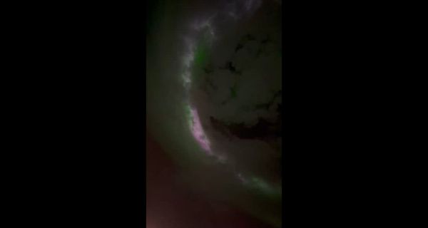 Þyrla Landhelgisgæslunnar flaug yfir gossvæðið í dag á leið sinni til æfingar með varðskipinu Þór. Um borð náðust þessar glæsilegu myndir af gosinu við Litla-Hrút.