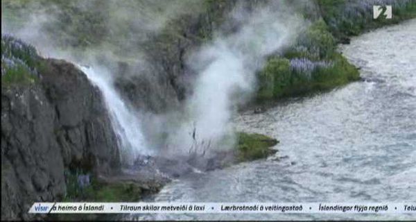 Þyrla Landhelgisgæslunnar flaug yfir gossvæðið í dag á leið sinni til æfingar með varðskipinu Þór. Um borð náðust þessar glæsilegu myndir af gosinu við Litla-Hrút.