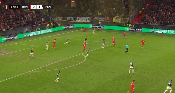 Brann fékk rautt og Freyr fékk gult Brann missti mann af velli í fyrri hálfleik í 4-0 tapi gegn Fenerbahce í Evrópudeildinni í gærkvöldi. 373 12. desember 2025 11:32 01:03 Fótbolti